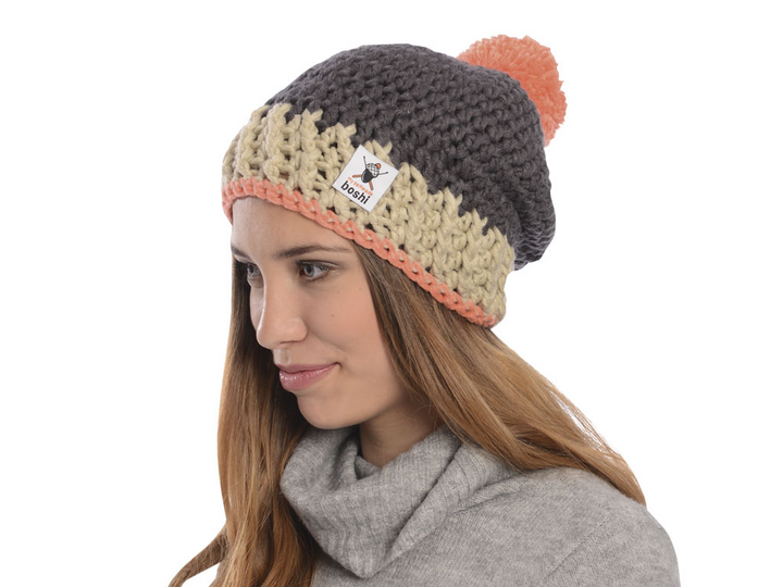 Die Mütze Natori bekommt durch einen Bund aus Reliefstäbchen und Abnahmen im Häkelmuster ihre klassische Ballonform. Der flauschige Bommel in der gleichen Akzentfarbe wie beim Abschluss rundet die schöne Optik der Mütze ab.