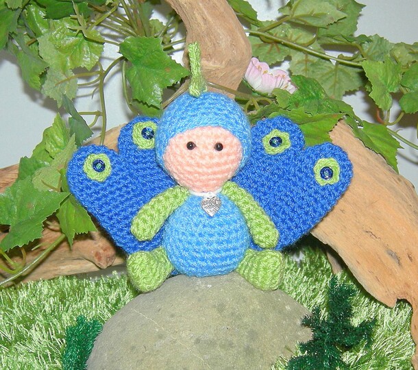 Pummelchen als Pfau wird, bei Verwendung von Schachenmayr Bravo und Nadelstärke 2, ca. 10 cm groß.