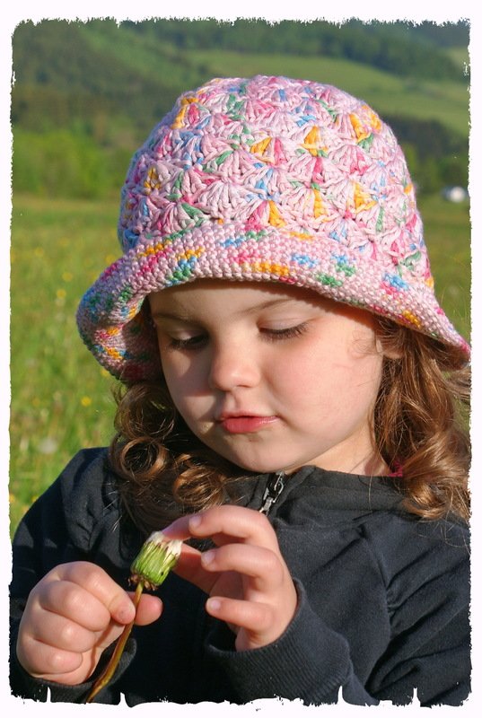 ✿✿✿ Endlich kommt der Sommer. Um den Nacken und Gesicht ihres Kindes/ Enkel etc. vor Sonne und eine kühle Brise zu schützten, passt dieser wunderschöne und romantische Häkelhut perfekt. Er ist super für kleine Mädels und sieht Uni und auch bunt geringelt ganz toll aus. Ich habe das Magic Line von Coats verwendet, da kommt der Farbeffekt direkt aus dem Knäuel und du musst keinen Farbwechsel machen ✿✿✿