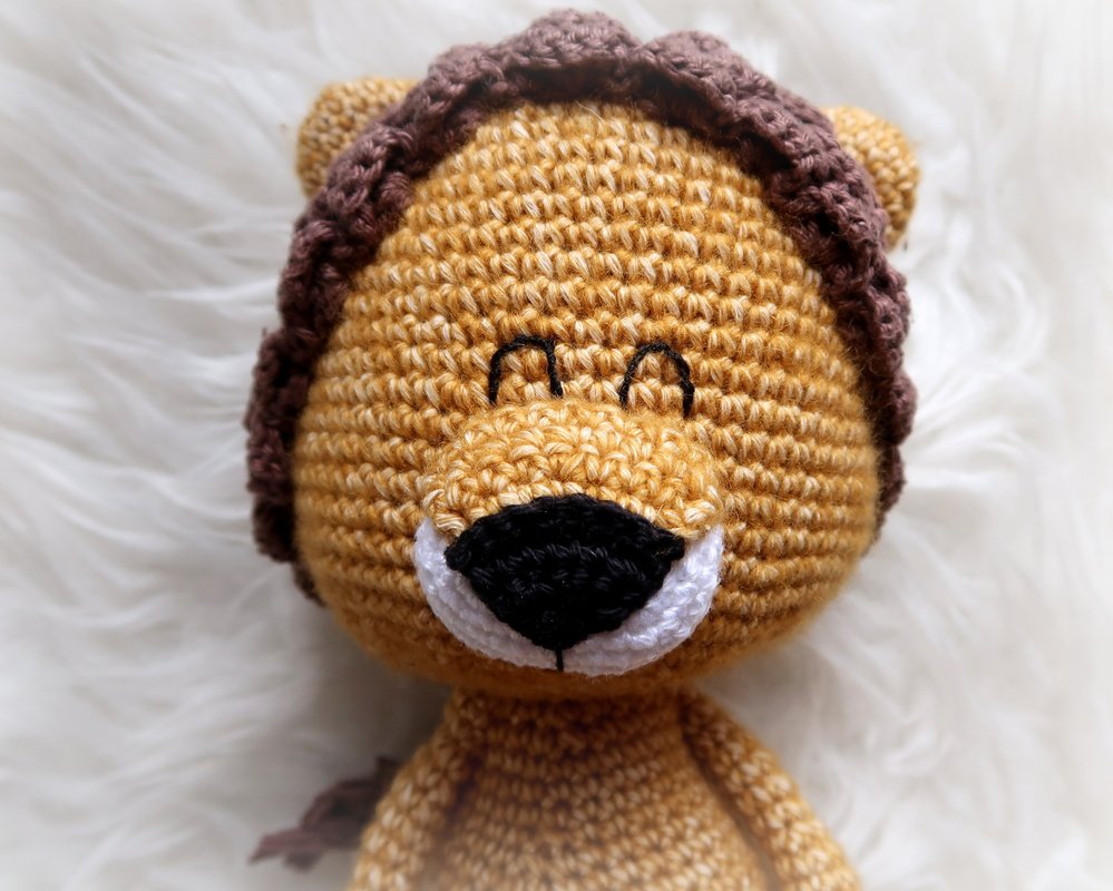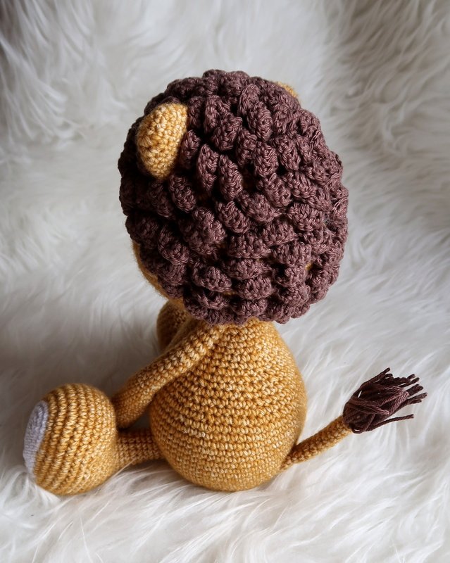 Wenn du mit dem angegebenen Garn häkelst, wird der Löwe ca. 24cm hoch.