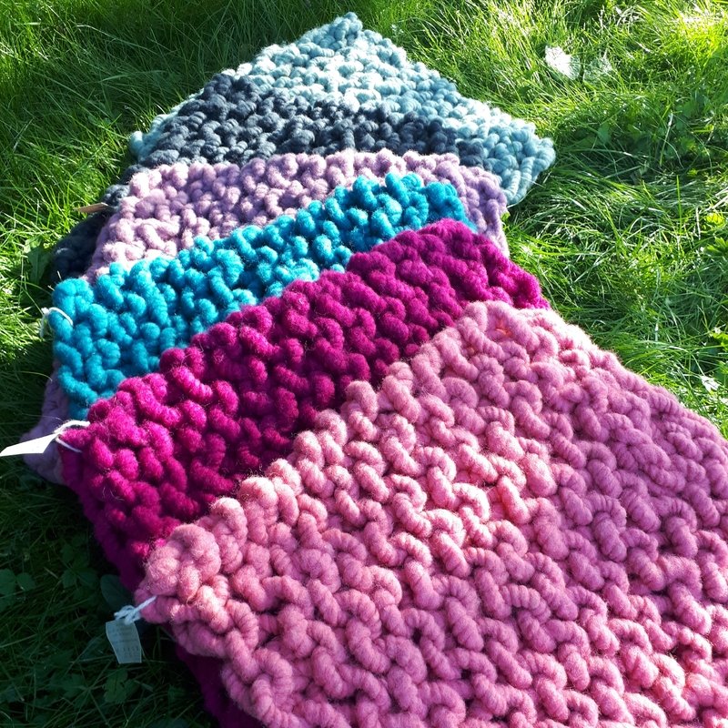 Mit dieser Anleitung als PDF-Datei kannst du dir schnell moderne, farbenfrohe, langlebige und natürliche Sitzkissen aus echter Wolle stricken.