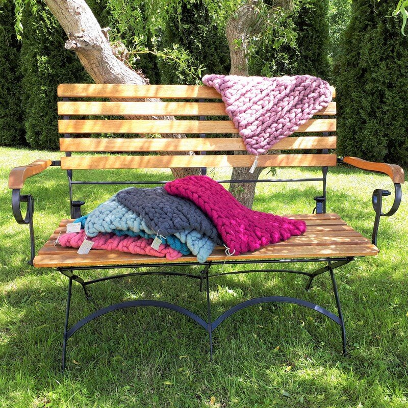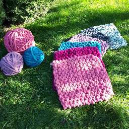 Für deine Gartenmöbel oder jeder anderen Sitzgelegenheit kannst du diese Sitzkissen mit großen Stricknadeln schnell entstehen lassen und wirst lange Freude daran haben.