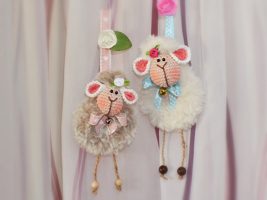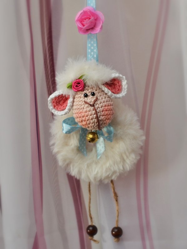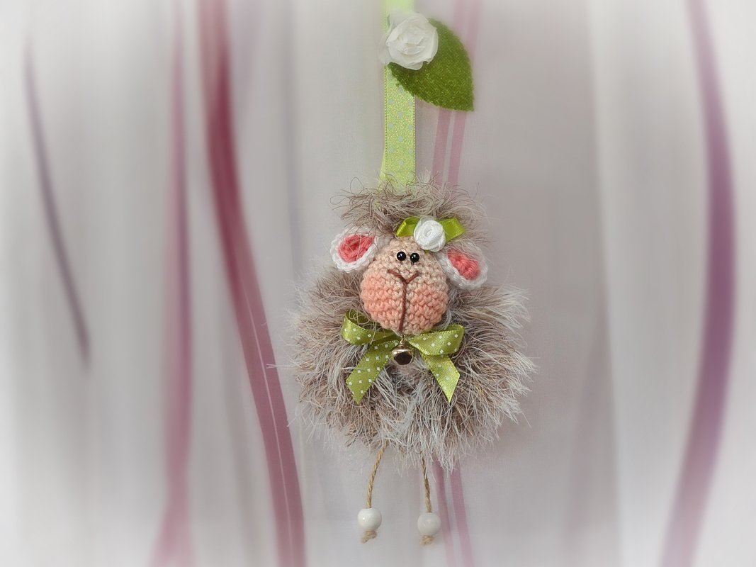 Mit dieser Häkelanleitung zeige ich dir, wie du dir diese wuscheligen Schafanhänger aus Holzringen / Gardinenringen häkeln kannst.