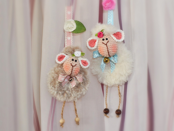 Häkelanleitung Schafe Wuschel Anhänger aus Gardinenringen in 2 Größen