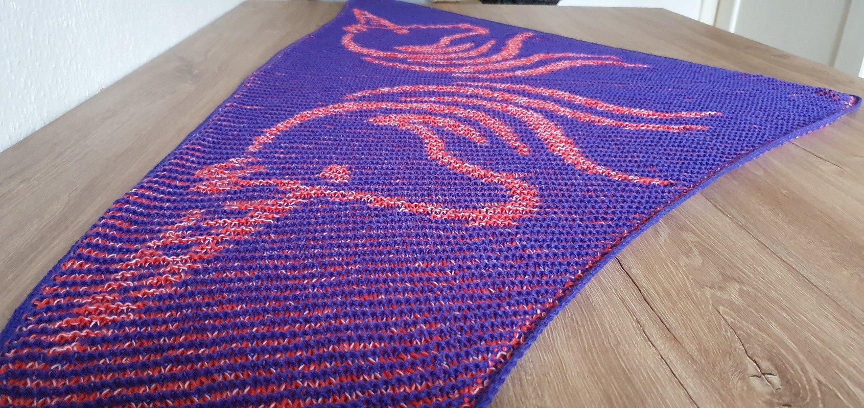 Das fertige Tuch hat bei mir eine Größe von etwa 175cm (Breite) x 78 cm (Tiefe).