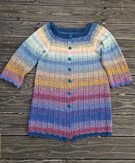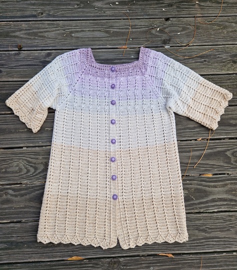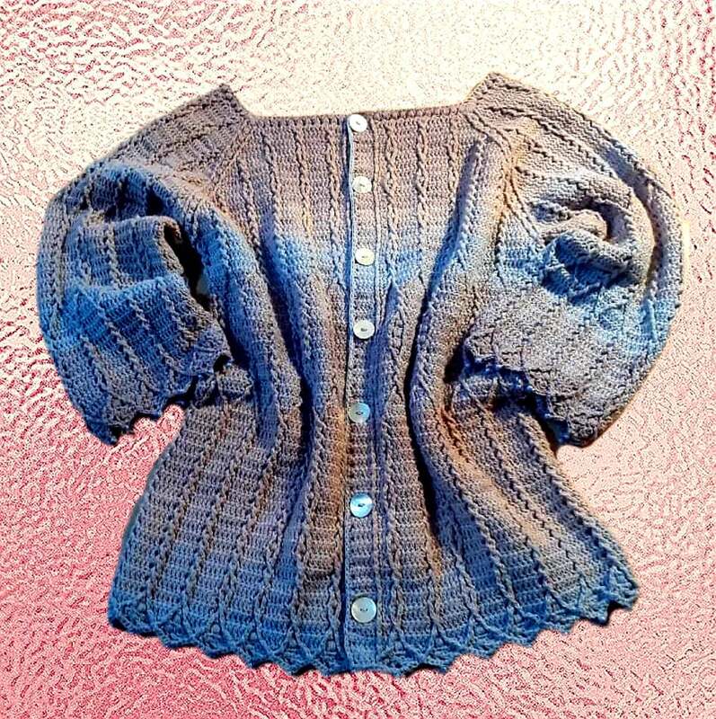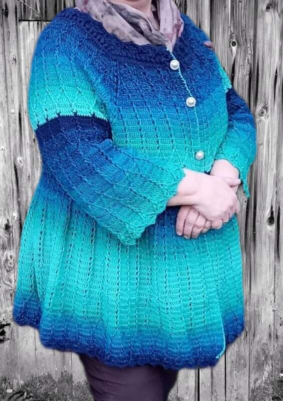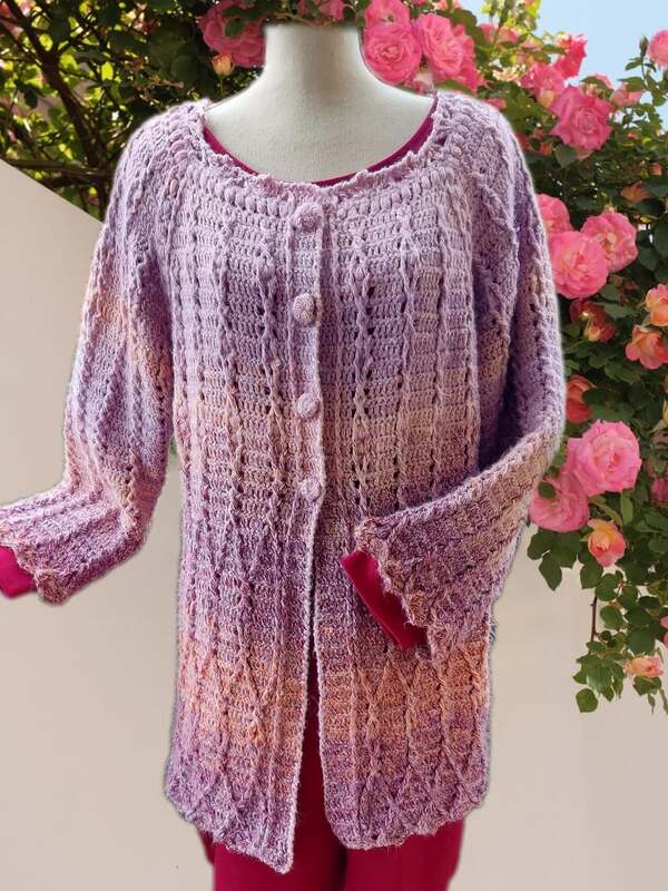 Die Jacke Salima schmeichelt jeder Figur ab Größe 34 aufwärts und kann in jeder gewünschten Länge sowie mit kurzen, 3/4 oder langen Ärmeln gehäkelt werden. Sie hat einen eher weiten Ausschnitt und es kann eine gerade oder eine A-Form gewählt werden.