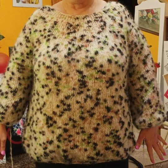 Ein superschöner Lieblingspullover in Runden von oben gestrickt in Nadelst.6