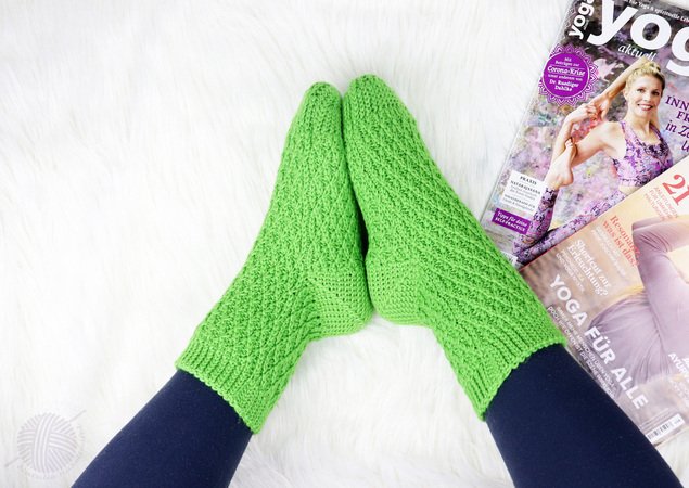 Weitere Häkelanleitungen für Socken und Hausschuhe finden Sie hier: https://www.crazypatterns.net/de/users/view_collection/1853/socken-hausschuhe-handschuhe-fuer-erwachsene