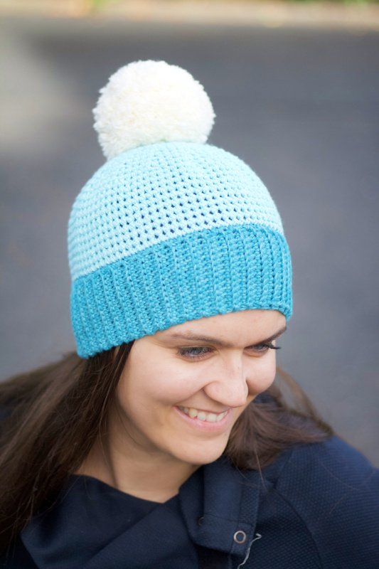 Winterblitz ist eine klassische Häkelmütze mit Bündchen und interessantem Flächenmuster. Die Optik erinnert an gestrickte Beanies. Du kannst sie ein- oder zweifarbig häkeln und entscheiden, ob du eine Bommel anbringen möchtest oder nicht.