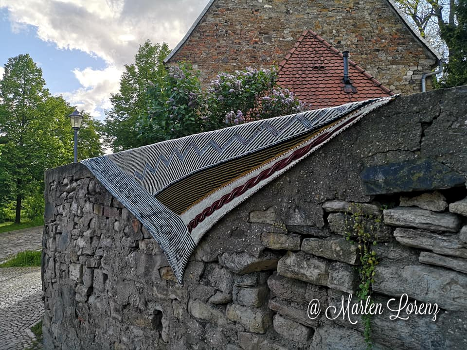 Es wird in vier Teilbereichen mit verschiedenen Techniken gearbeitet und kann mit bis zu 8 Farben gestrickt werden. Ganz bewusst verwenden wir in der Anleitung keinerlei englischsprachige Bezeichnungen, weshalb dieses Tuch nicht nur für erfahrene Stricker auf Grund der vielfältigen Arbeitsweisen ein interessantes Projekt ist.