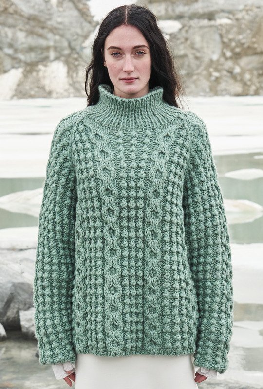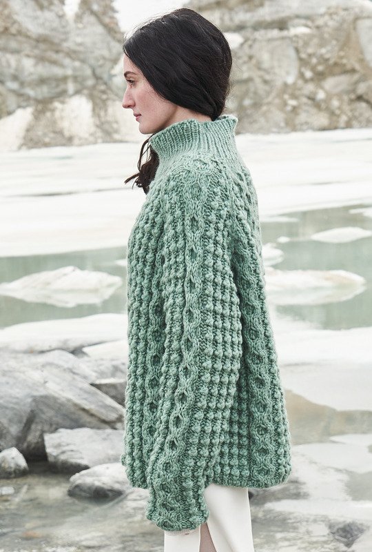 Voluminös durch Garn und Muster, oversized durch den lässigen Raglanschnitt – so warm eingepackt wird die Masche zum Frostkiller und begleitet uns treu durch Eis und Kälte! Gestrickt mit Nadelstärke 8 und viel Abwechslung ist der Raglanpulli zudem noch recht schnell fertig. Begonnen wird mit dem Rückenteil, erst das Rippenbündchen, dann weiter im Muster, bei dem sich Zöpfe und Noppen abwechseln. Weiter geht es mit dem Vorderteil und den Raglanärmeln. Das weiche, angenehme Garn aus feinster Schurwolle, Baumwolle und Yak gleitet dabei angenehm über die Nadeln. Zum Schluss werden die Nähte geschlossen und aus den Halsmaschen der wärmende Stehkragen herausgestrickt.