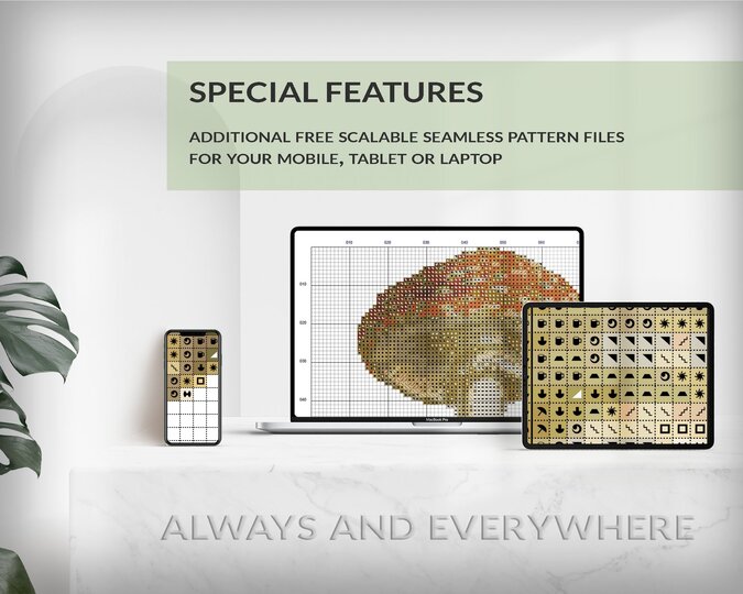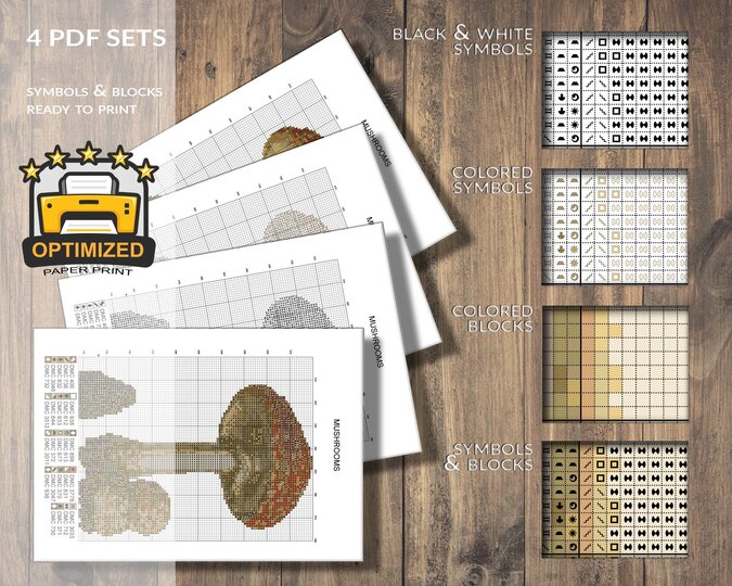 In this cross stitch template you will find a variety of poisonous and edible mushrooms. Choose for yourself which ones you would like to use.