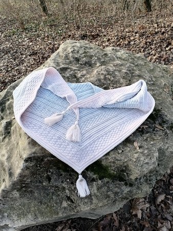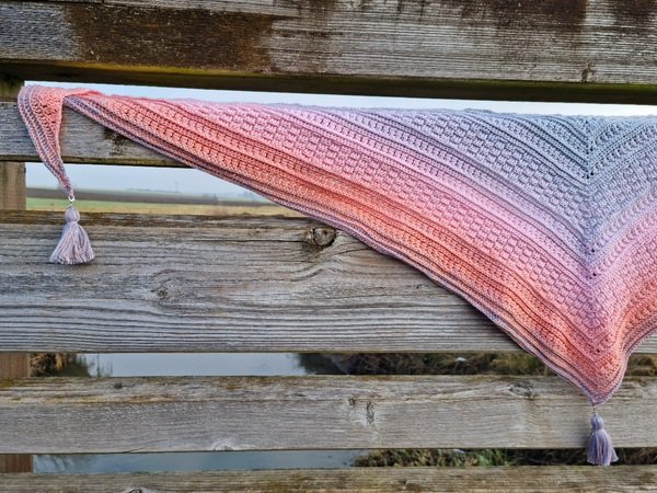 Cool Winter ist ein dichtes, kuscheliges Dreieckstuch mit flacher Form (also eher kürzerer Spitze). Wenn du dichte Muster magst und gerne Stäbchen und Reliefstäbchen häkelst, ist diese Anleitung für dich genau richtig:-).