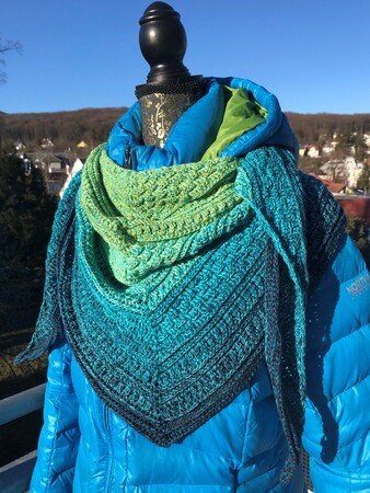 Welche Wolle ist den das, von dem ersten Bild die grün blau töne ,die ist echt toll so ein Tuch würde mir gefallen