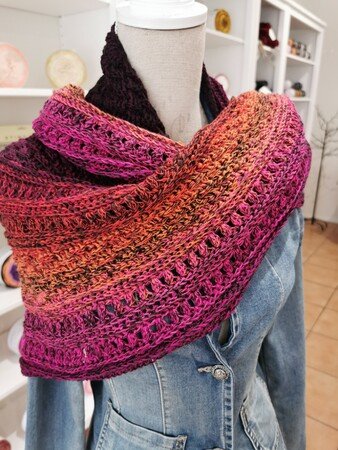 Ich habe das Tuch bereits zwei Mal als Geschenk gehäkelt. Die Muster bieten Abwechslung, lassen sich aber trotzdem gut nacharbeiten.