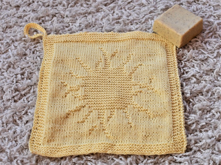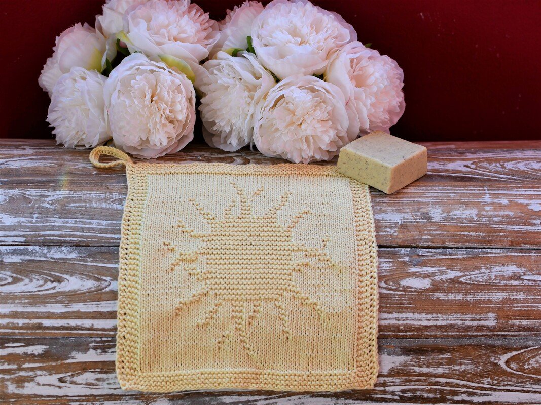 Als ich vor kurzem ein paar Tage herrlichsten Sonnenschein genießen konnte, wurde mir mal wieder bewusst, wie wertvoll die Sonnenstrahlen für unser Wohlbefinden sind. Wenn die Sonne scheint, wirkt die ganze Welt gleich heller und freundlicher. Da wir das Wetter ja nicht beeinflussen können, finde ich dieses Tuch, das Du als Waschlappen oder Spültuch stricken kannst, einen wunderbaren Gute-Laune-Macher. Für Dich selbst, oder auch als Geschenk für einen lieben Menschen, der etwas Sonnenschein im Leben brauchen kann.