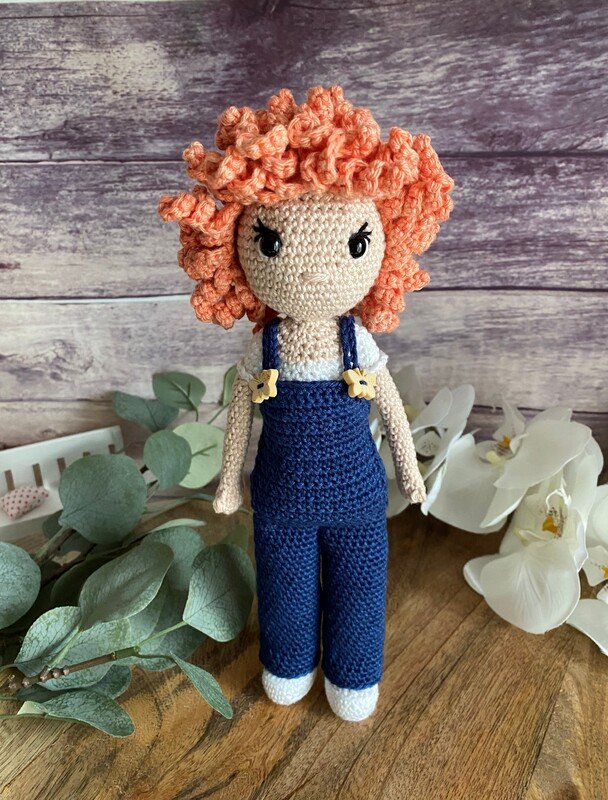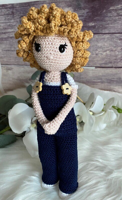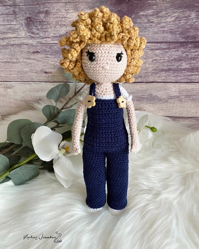 Du erhälst eine PDF-Häkelanleitung für die Puppe Curly.