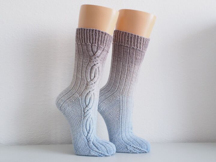 Anweisungen für die Käppchenferse und Bandspitze sind inbegriffen, es kann aber auch jede andere gestrickt werden, ganz nach der eigenen Vorliebe.