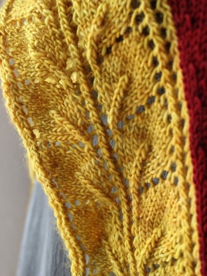 Die Anleitung hat zwei Charts, für den Mittelteil und die Blattbordüre. Der Rest ist ausgeschrieben. Laut meiner Teststrickerin ist das Tuch einfach zu stricken und das Muster macht süchtig.