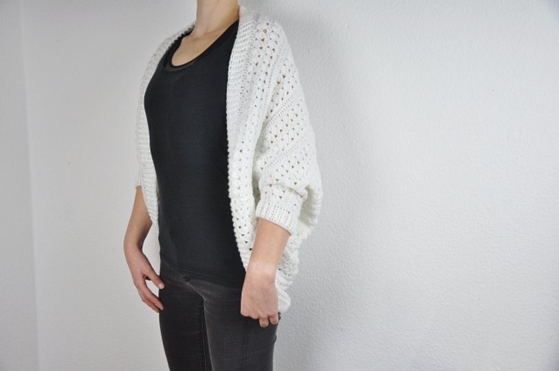 Die Jacke wird in einem Grundmuster gehäkelt, das detailliert in der Anleitung beschrieben ist und schnell umgesetzt werden kann. Auch für Anfänger geeignet.
