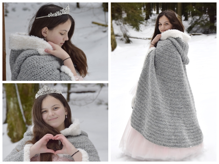 Da es in unseren Breitengarden zu Fasching bzw. Karneval oder auch zu Halloween richtig kalt ist, häkle ich fast jedes Jahr einen passenden Umhang zum Kostüm meiner Kinder. Da oft nach der Anleitung gefragt wird, habe ich dieses Jahr wieder ein Model gearbeitet. Der Kapuzenumhang ist sehr variabel, lässt sich perfekt für jedes beliebige Kostüm gestalten und für Kinder und Erwachsene anpassen. Die Farbe kannst du nach deiner Vorstellung und passend zum Kostüm wählen und somit auch für Jungs coole Superhelden- oder Ritterumhänge arbeiten.