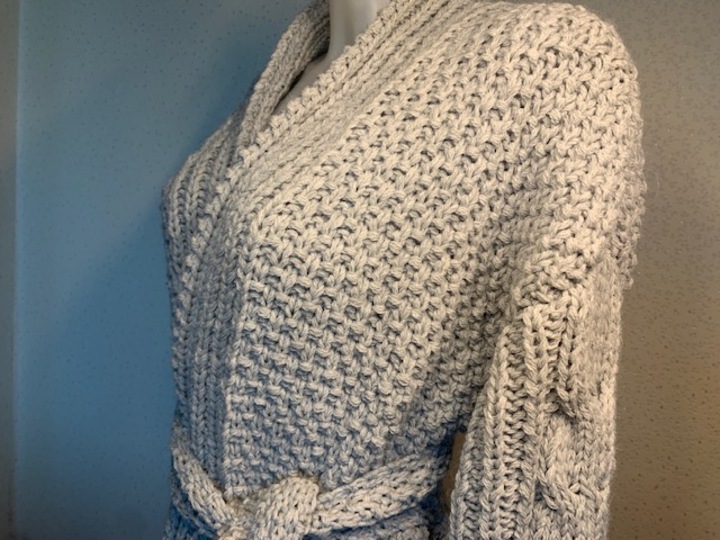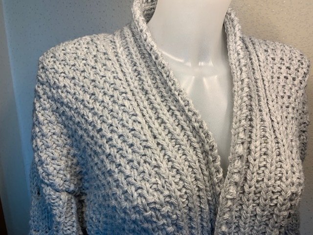 Eine großzügig geschnittene Basic-Jacke, die einfach zu jeder Gelegenheit und Jahreszeit paßt. Egal ob zum gemütlichen Einkuscheln auf der Couch im Winter oder als wärmendes Lieblingsteil für kühle Sommerabende im Freien, diese Jacke begleitet dich durch das ganze Jahr. Ein durchgehender Schalkragen und gezopfte Ärmel setzen sich von einem einfach Gerstenkornmuster ab, welches dank einer 7er Nadel schnell nachzuarbeiten ist.