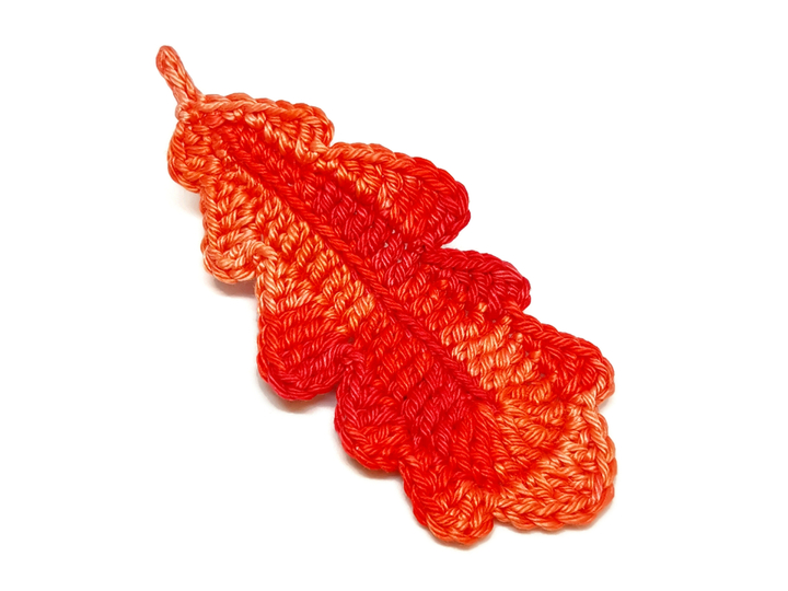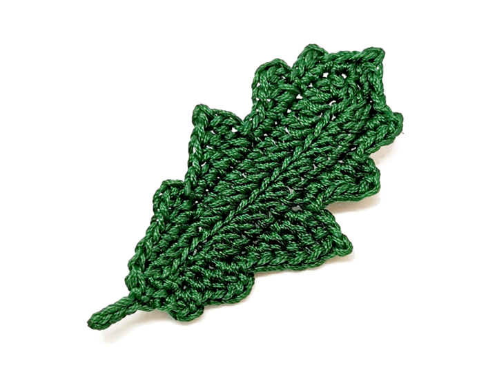 Die Häkelanleitung enthält Schritt-für-Schritt-Beschreibungen zum Häkeln von 4 Arten von Eichenblättern, einschließlich Diagrammen und Fotos. Die Häkelanleitung enthält Anweisungen für Rechtshänder.