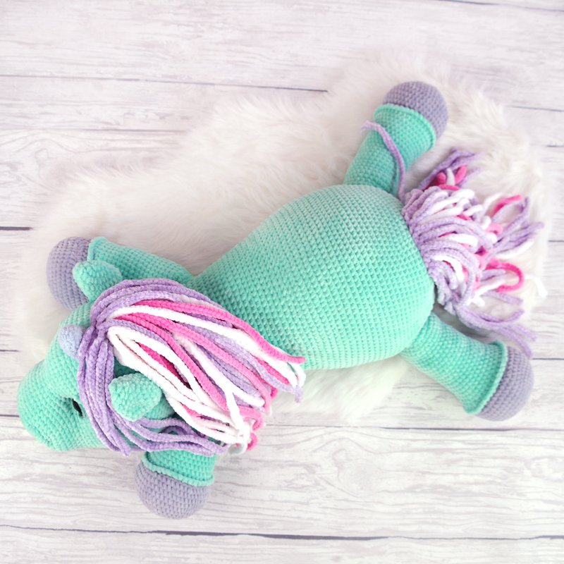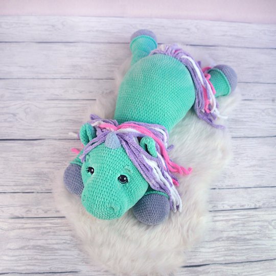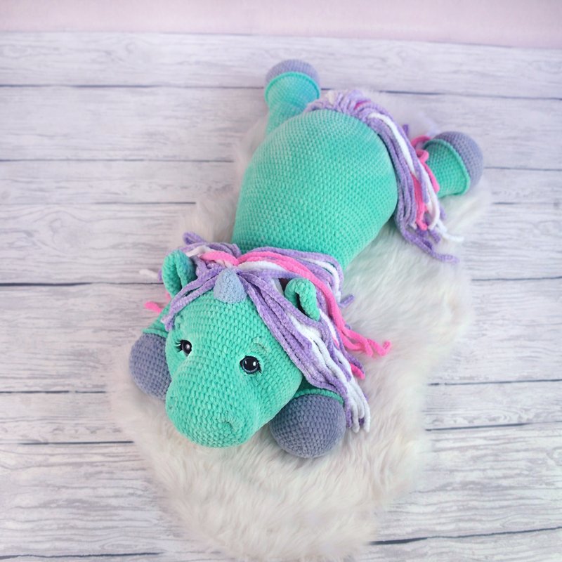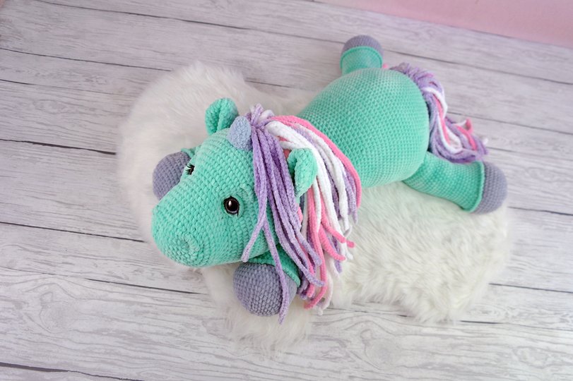 Das Einhorn mit angegebener Wolle ist сa. 90 cm groß.