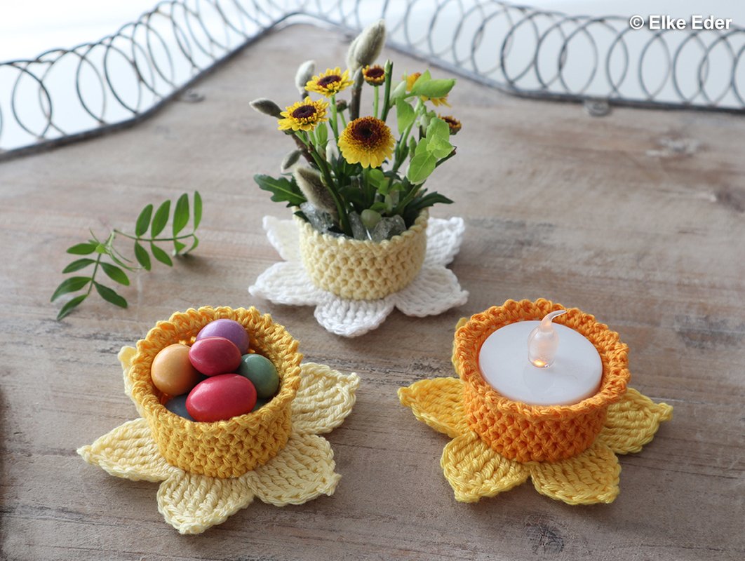 Die Narzissen-LED-Teelichthalter sind eine wunderbare Deko für Ostern und Frühling. Du kannst sie auch als kleines Nest für ein paar Oster-Süßigkeiten, als Geschenkkörbchen oder als Eierbecher verwenden.
