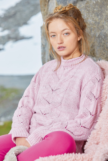 Die neuen Wintergarne überzeugen durch den Mix aus Schur- und Baumwollfasern mit Viskose (so wie dieses) – die perfekte Mischung für alle, die auf reine Wolle sensibel reagieren. Hier als gemütlicher Sweater mit Ajourstreifen, die wie Blätter anmuten. Schönes Gimmick: Die Rippenbündchen schließen mit einem winzigen glatt rechts gestrickten Rollrand ab. Der Pulli kann im Wollwaschgang in der Waschmaschine gewaschen werden. Die Anleitung kannst du dir für Größe 38/40, 42/44 und 46/48 herunterladen.