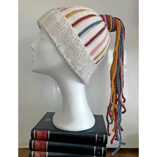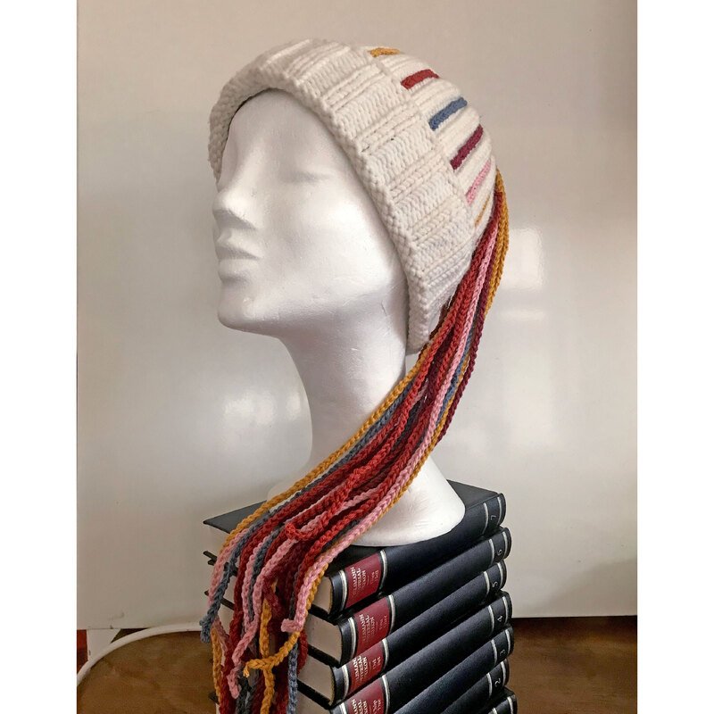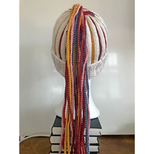 Die Mütze ist der absolute Hingucker und etwas ganz Besonderes. Du kannst jeden Tag ganz einfach eine andere "Frisur" tragen, indem du die Zöpfchen zu einem Zopf flechten kannst. oder zu einem Dutt drehen oder vieles andere mehr.