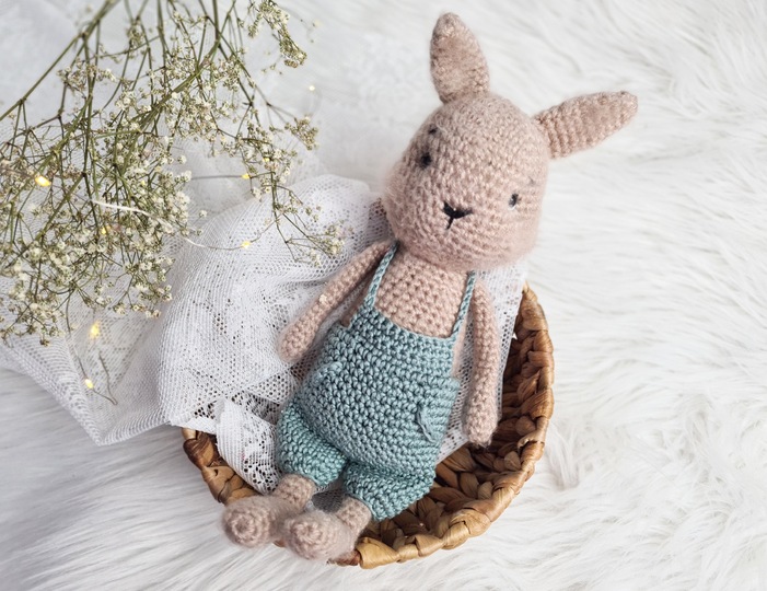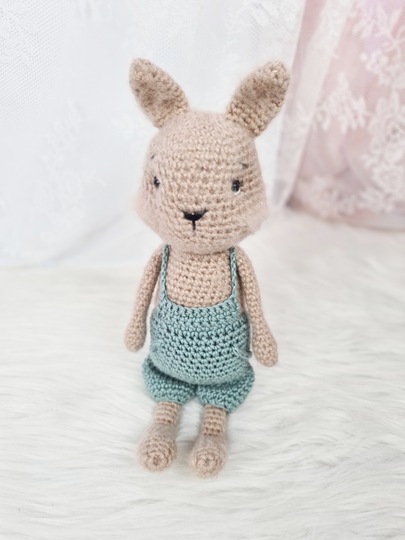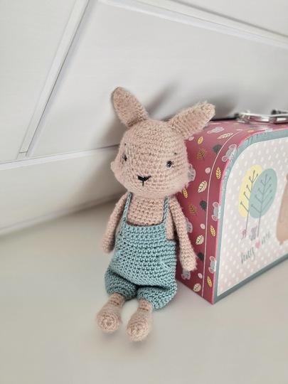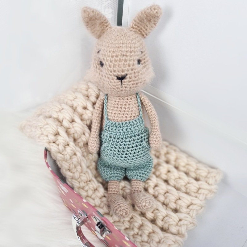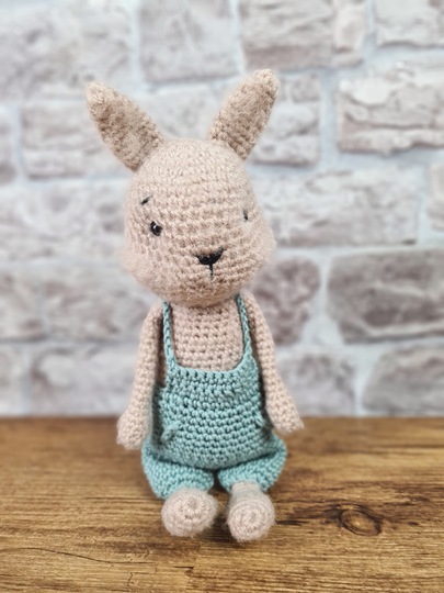 Von Kopf-Fuß gemessen und unter Verwendung der genannten Wolle wird das Häschen ca. 31 cm groß