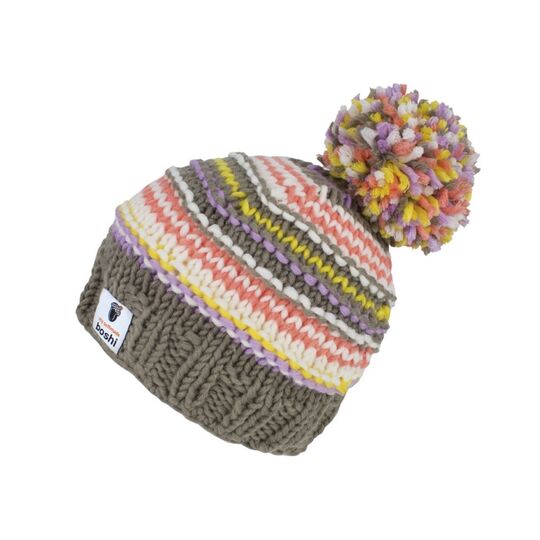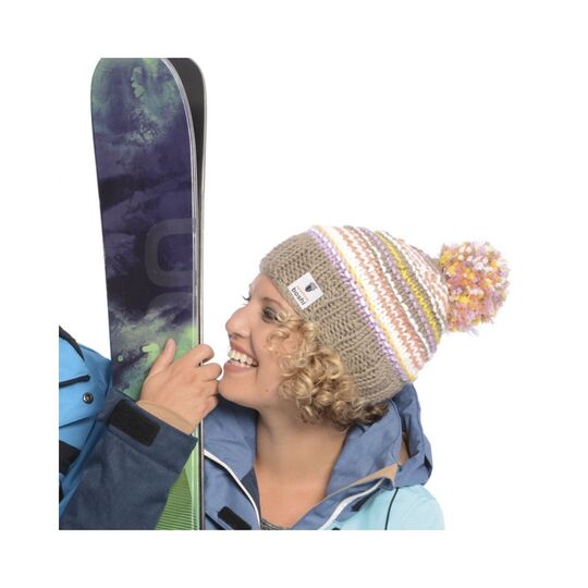 Die Mütze Philadelphia wir mit fünf verschiedenen Farben gestrickt. Der bunte, große Bommel verleiht der Mütze ihren ganz besonderen Look.