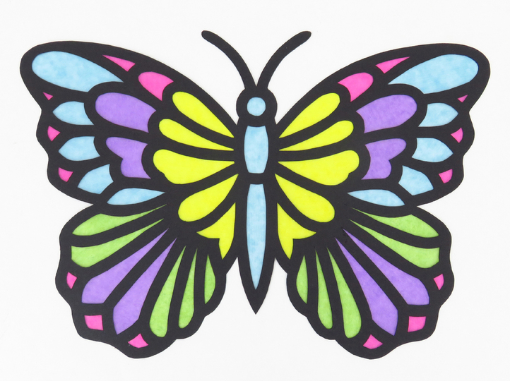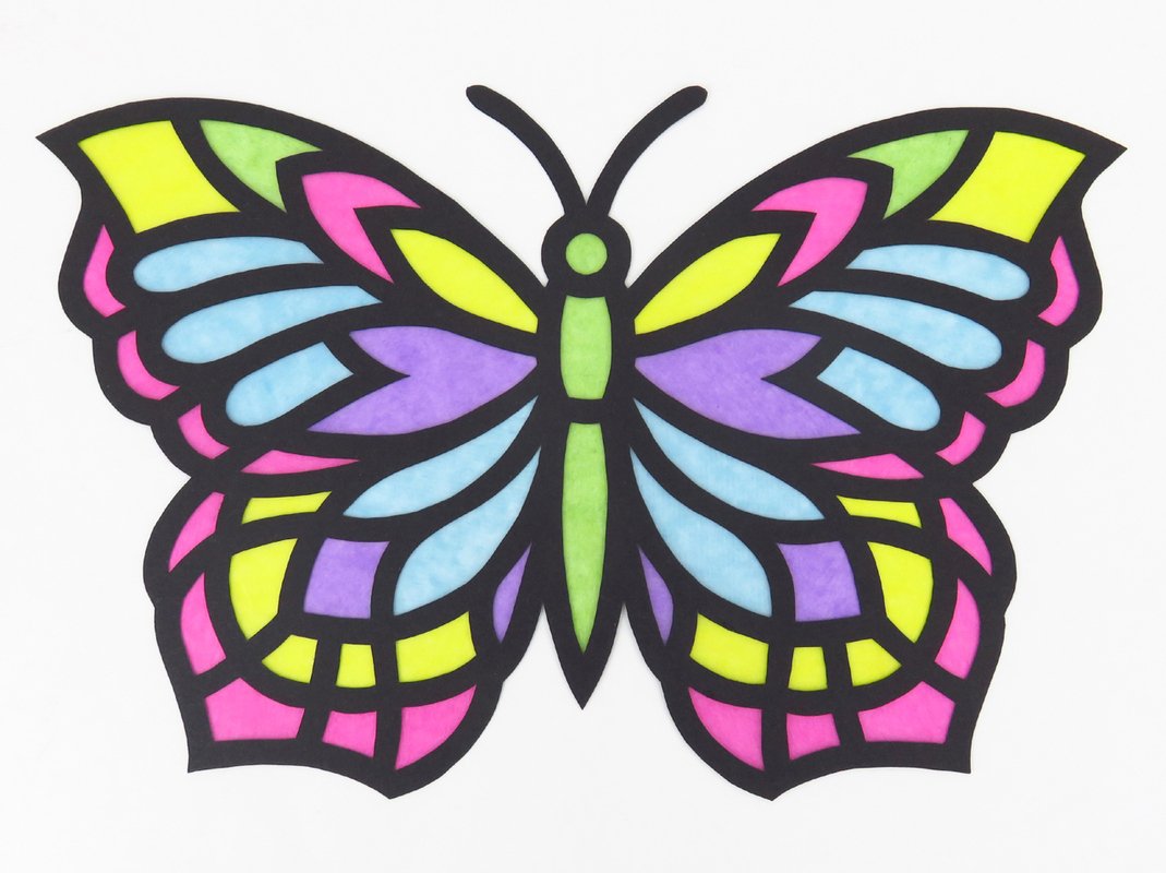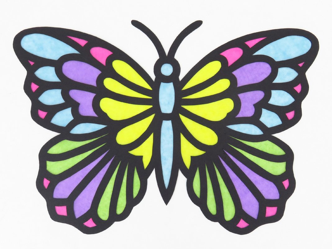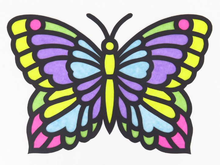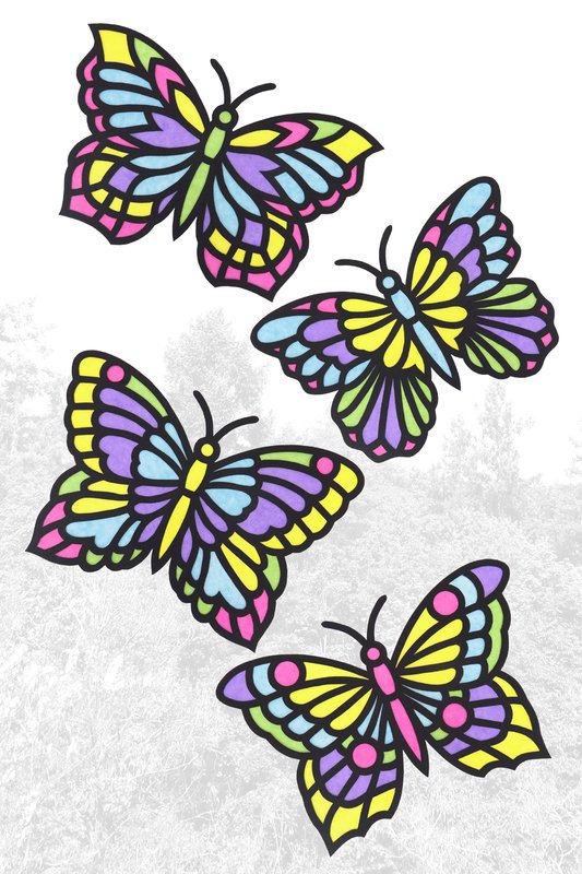 Um die Schmetterlinge nachzuarbeiten, sollst du mit Schere und Cutter umgehen können. Auch sollst du bereits mit Transparentpapier und Klebstoff gearbeitet haben. Unter diesen Voraussetzungen wirst du diese Fensterbilder ohne Mühe nacharbeiten können.