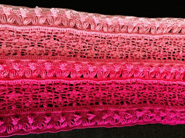 Das Muster wiederholt sich nach wenigen Reihen, jeder Mustersatz besteht aus 16 Maschen, daher kann der Loop je nach Wunsch etwas breiter oder schmäler, oder auch gemäß der eigenen Vorliebe länger oder kürzer gemacht werden.