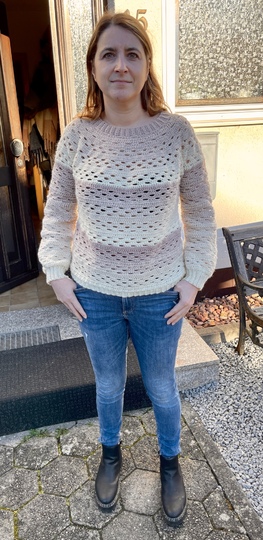 Der große Vorteil der Rundpasse ist, dass ihr sie jederzeit anprobieren könnt und wir den Pullover/ das Shirt in einem Stück häkeln, so dass ihr keine Einzelteile vernähen müsst.