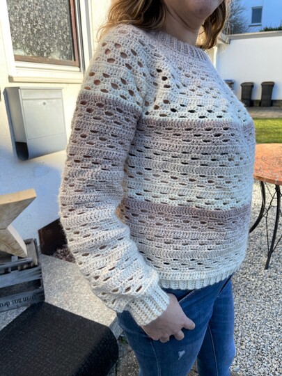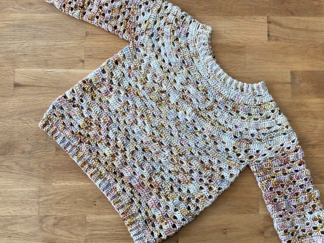 Beim vorgestellten Produkt handelt es sich nicht um das fertige Werk, sondern um eine Anleitung, um den Pullover selbst zu häkeln.
