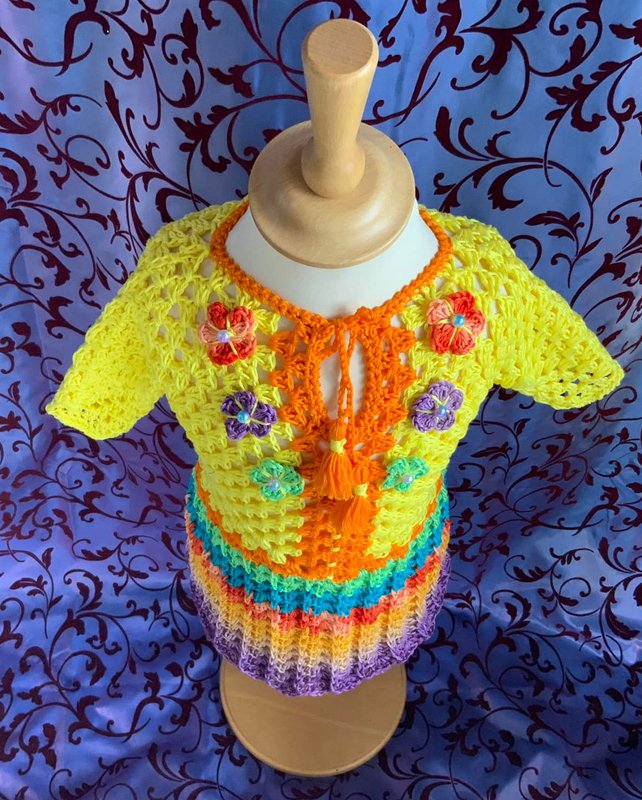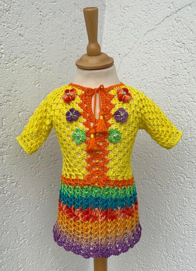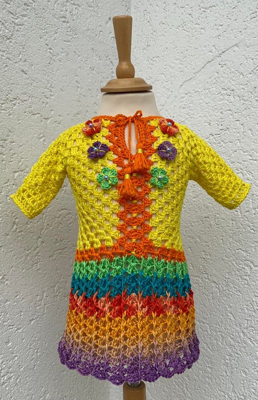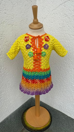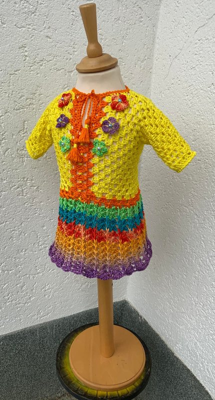Man kann natürlich jede andere Wolle mit einer ähnlichen Lauflänge benutzen… Auch viele Farbkombinationen sind bei dem hübschen Sommerkleidchen 1 möglich! Ich wünsche viel Vergnügen beim Kreativ sein!