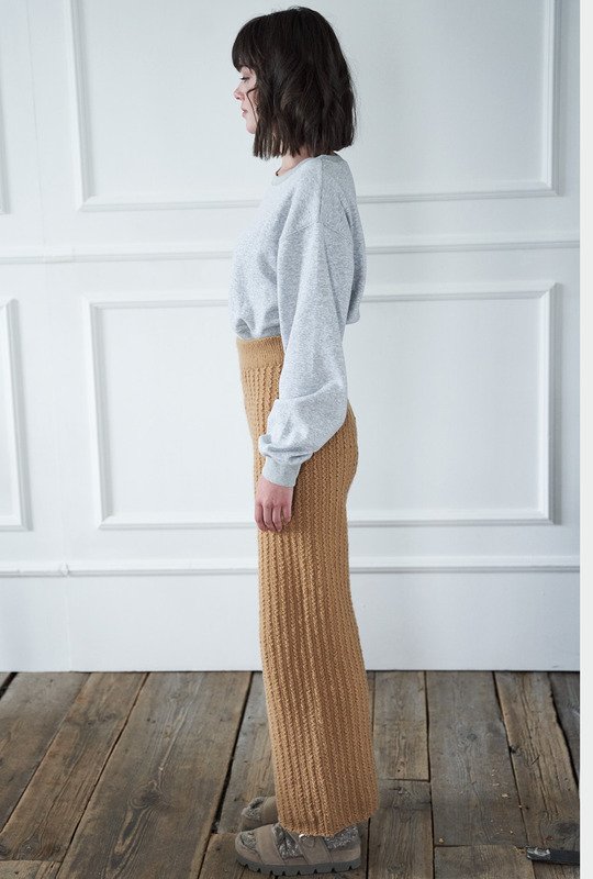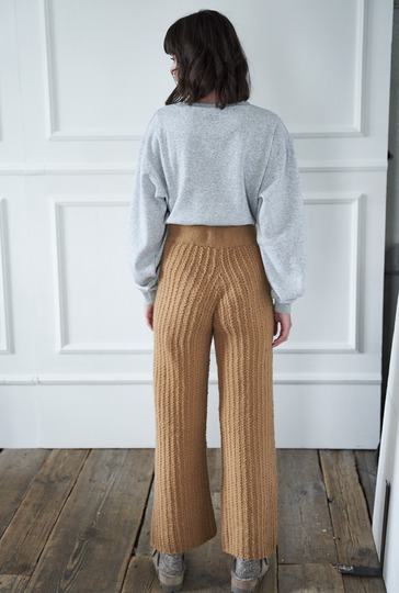 Anziehen und relaxen: Dafür ist diese mit zarten Zopfstrukturen verzierte Hose genau das Richtige – und der wohlverdienten Auszeit steht nichts mehr im Wege. Gestrickt werden erst beide Hosenbeine einzeln und mit feinen Zopfmusterstreifen. Danach werden die Schrittnähte und die Nähte der inneren Hosenbeine geschlossen. Dann wird der obere Hosenrand glatt rechts in Runden mit einer Umbruchkante gestrickt, nach innen umgeschlagen und angenäht. Ein eingezogenes Gummiband sorgt dann für bequemen und sicheren Sitz.