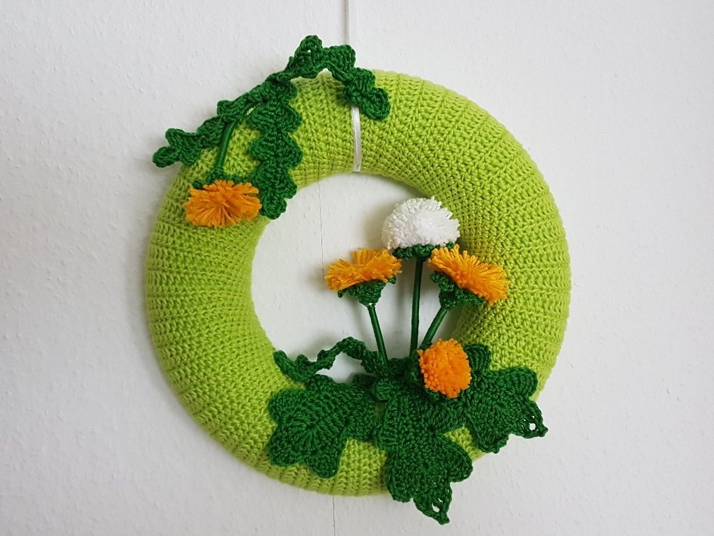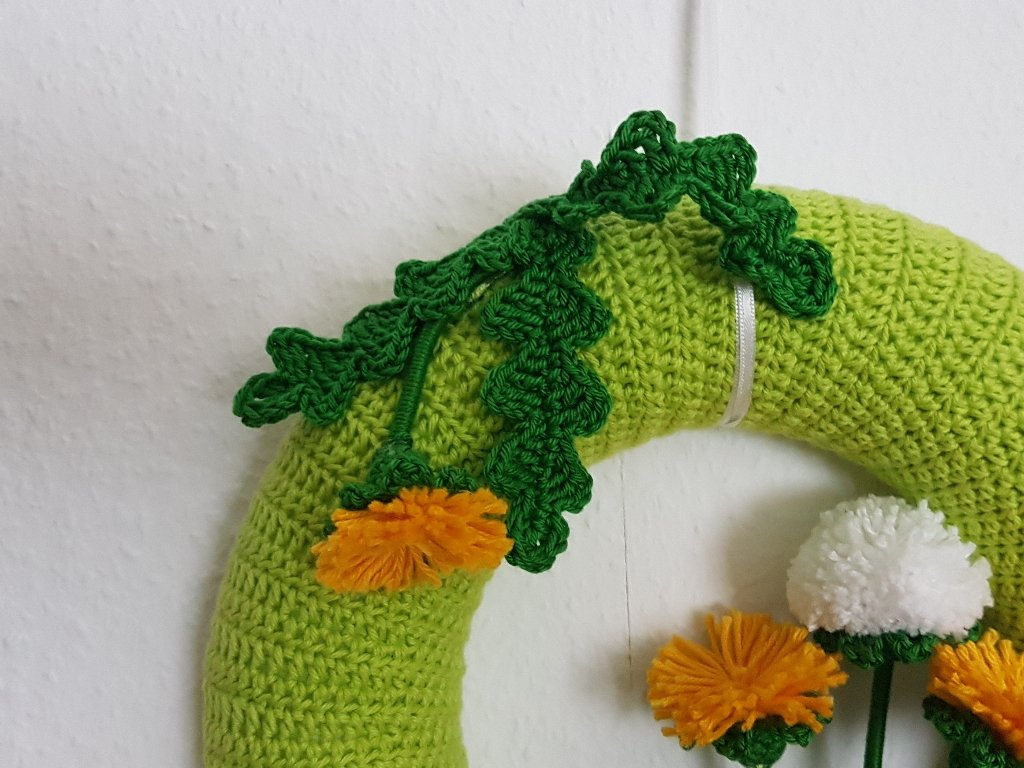 Ihr erhaltet eine ausführliche 13-seitige und reich bebilderte Anleitung für einen ca. 25 cm großen Deko-Kranz im Frühlings-Outfit.