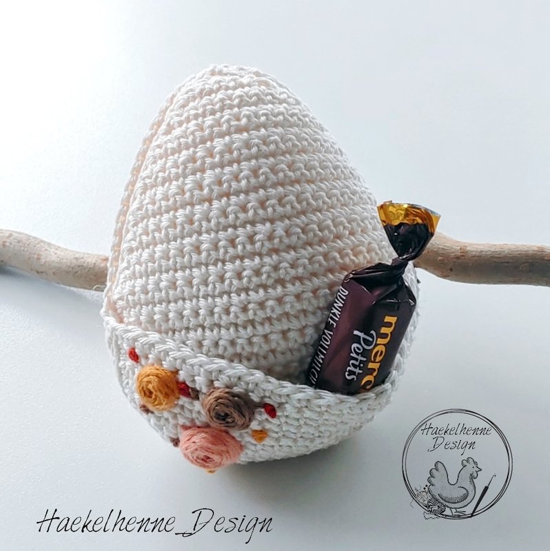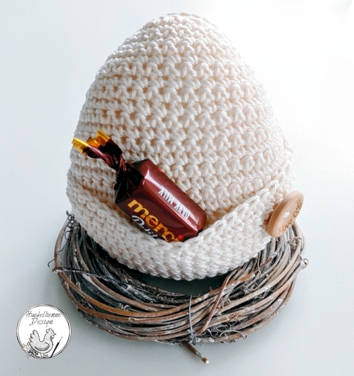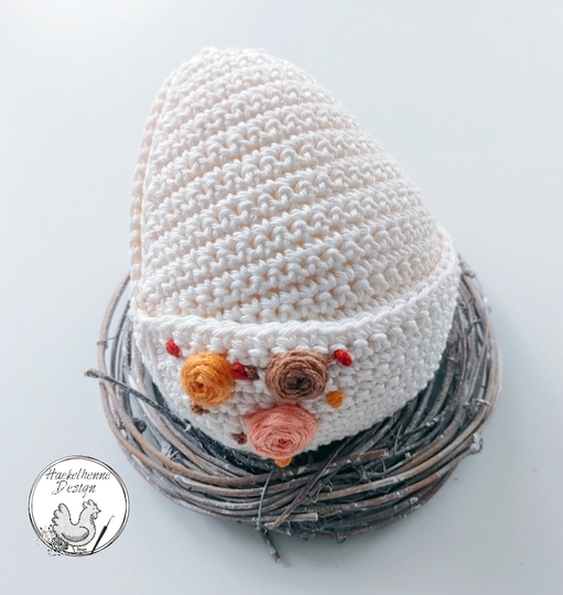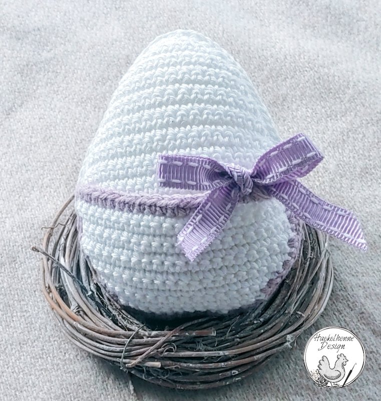Das Ei wird in Reihen, Lm und Fm gehäkelt. Du solltest das Ab. u. Zunehmen von Maschen beherrschen. Es ist ein absolutes Anfängerprojekt.