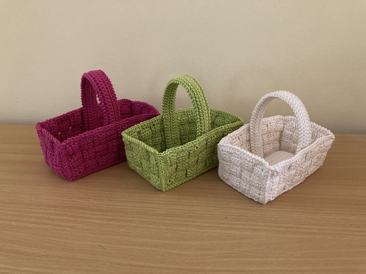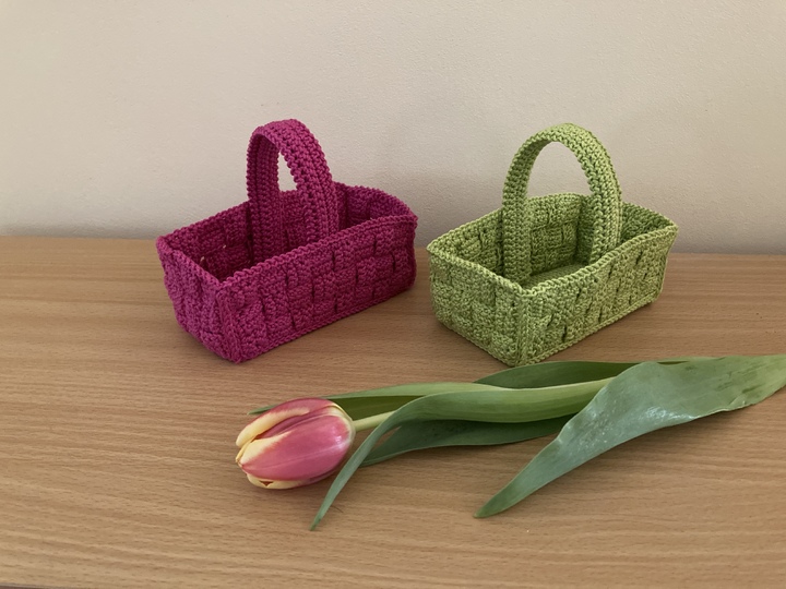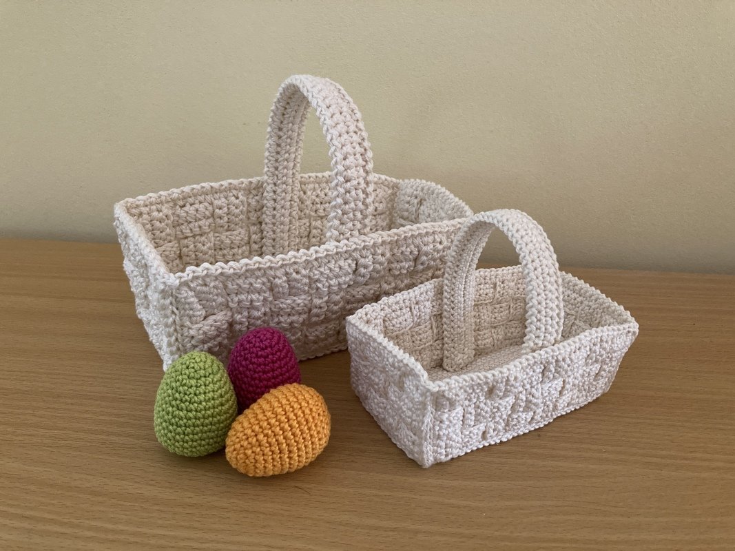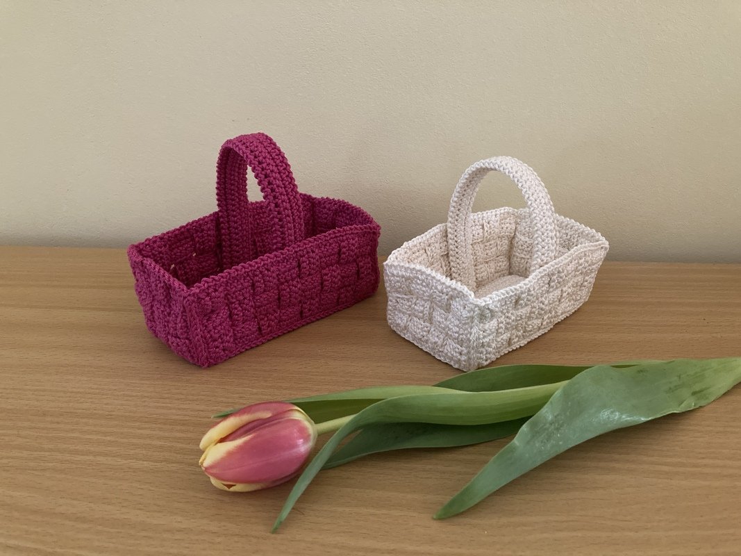 großes Körbchen: ca. 10x19 cm und ca. 7 cm hoch (mit doppelten Faden gehäkelt)