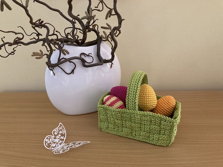Die Anleitung beinhaltet neben dem Körbchen auch kleine Ostereier.