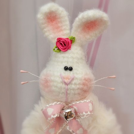 Ich habe die Teile des Hasen mit Acrylwolle oder Wolle mit leichtem Flauscheffekt und Häkelnadel 2,5 mm gehäkelt.