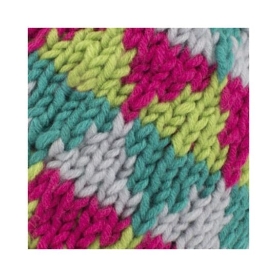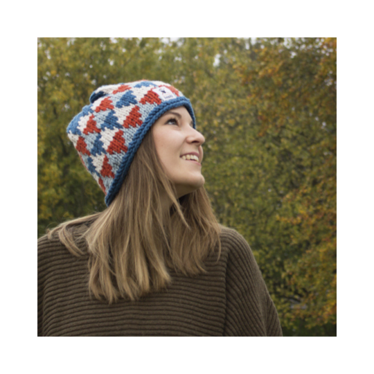 Stricke dir diese tolle Mütze mit Intarsienmuster in multicolor Optik. Sie ist nicht nur ein stylisches Accessoire, sondern hält auch schön warm.