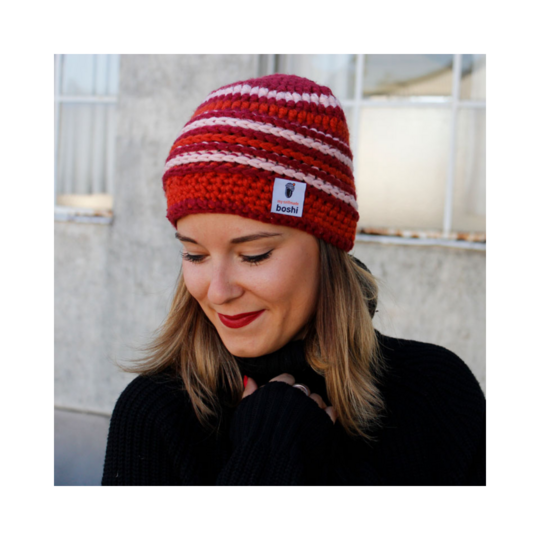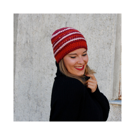 Die Mütze Arao wird durch ihre gestreifte Optik durch unterschiedliche Maschen zu einem ganz besonderen Accessoire. Sie sieht nicht nur super aus, sondern hält auch schön warm.
