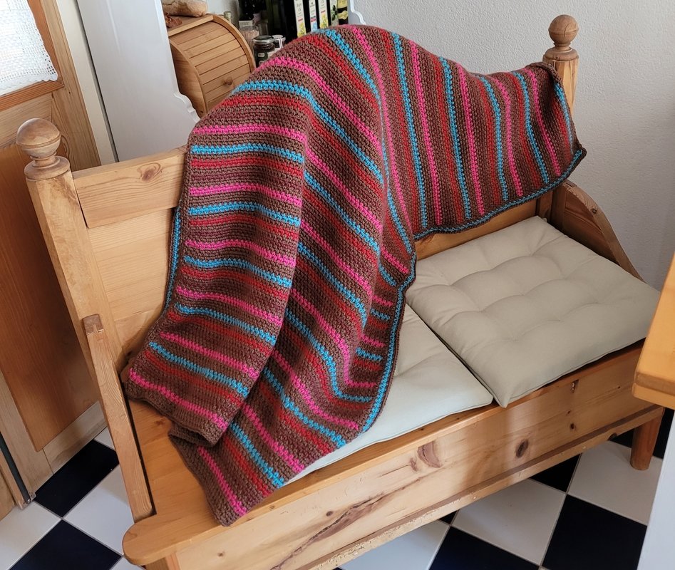 Häkle dir deine eigene Sofadecke. Im angesagten Webmuster in den Farben, die zu deiner Einrichtung passen. Meine Decke ist 85 mal 125 cm groß, lässt sich aber problemlos auch in anderen Größen häkeln.