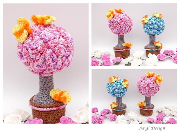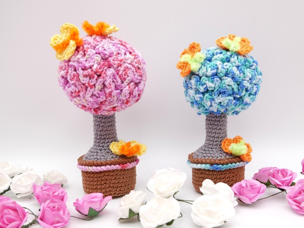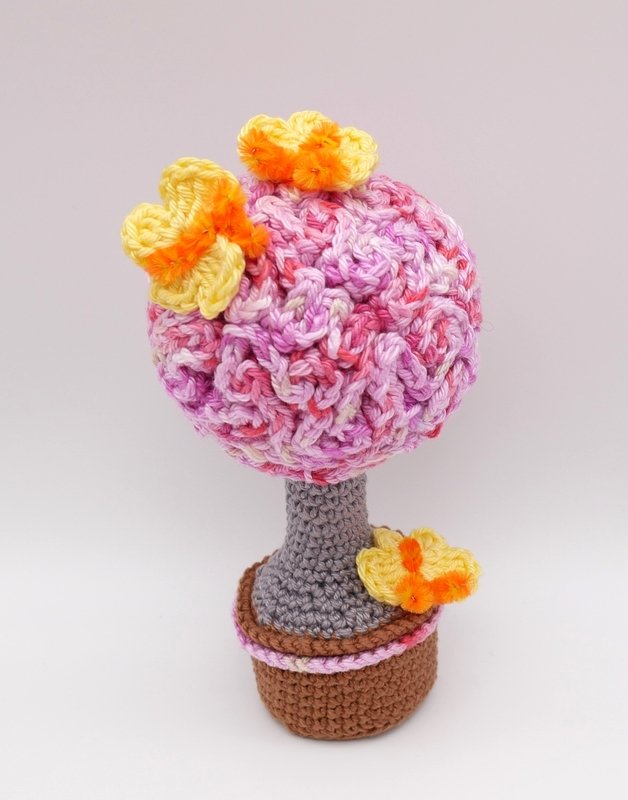 Dekoratives Häkelbäumchen in 2 verschiedenen Größen, mit kleinen Schmetterlingen.