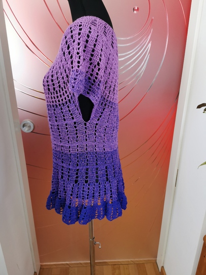 Die Tunika "Esperanza" ist luftig und leicht, schnell gehäkelt, besticht aber trotzdem durch die Anordnung der verschieden breiten Streifen und Luftmaschenbögen.
