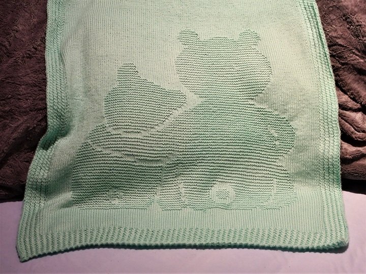 Das Motiv mit den beiden Bären, die eng aneinander kuscheln, geht direkt ins Herz. Wenn der kleine Bär sich innig an seine Bärenmama schmiegt, fühlt er sich so richtig geborgen, und nichts auf der Welt kann ihm etwas anhaben. Dieses Gefühl des Aufgehobenseins wünscht man doch jedem kleinen Erdenbürger, der neu zur Welt kommt! Mit dieser aus extra sanfter Babywolle gestrickter Decke kannst Du diese guten Wünsche symbolisch verschenken.